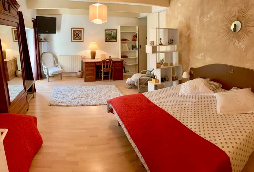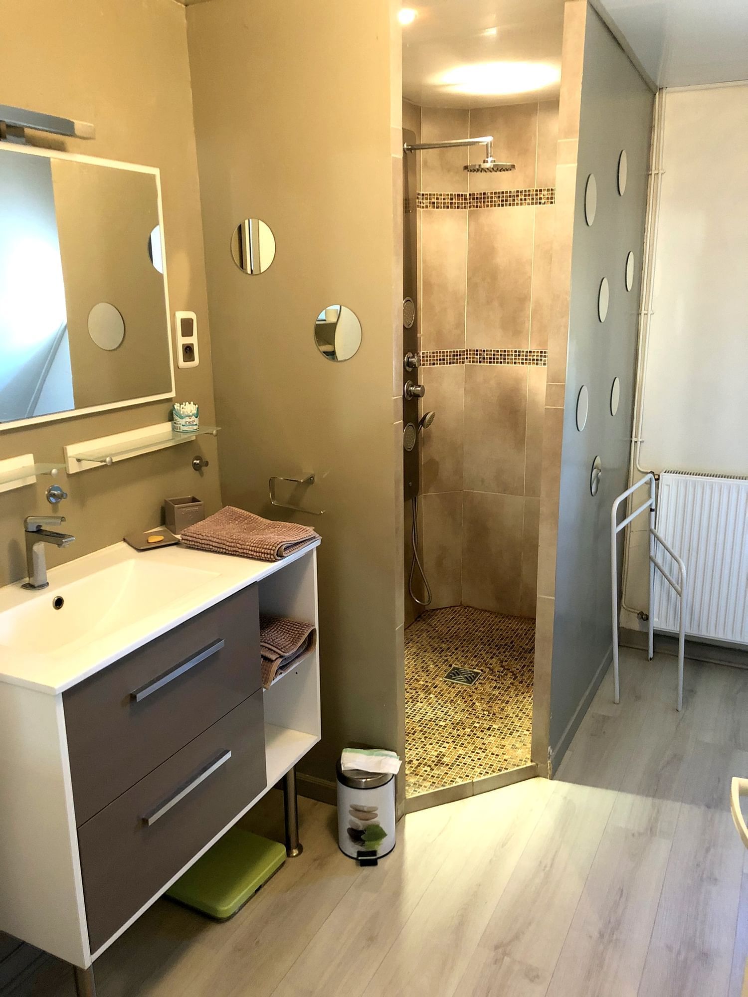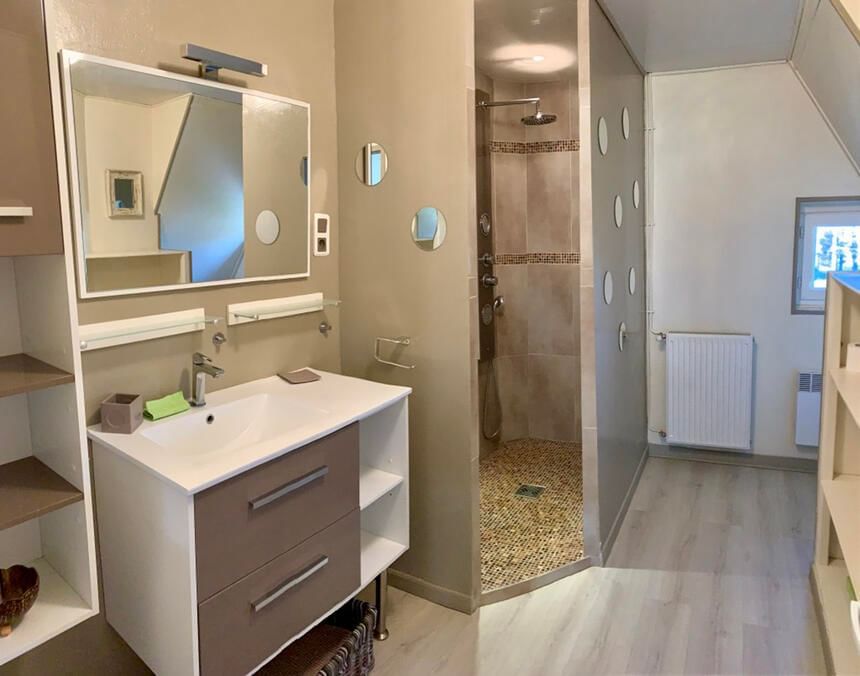Gite d'environ 60 m2 pour 5 personnes constitué d'un salon équipé d'un canapé-lit 2 places, d'une cuisine intégralement équipée - matériel et électroménager - d'une grande chambre avec lit king size, lit de 90 et un bureau. Vous pourrez également disposer d'un lit de bébé si besoin. Vous profiterez de la wifi gratuitement et pourrez regarder la télévision aussi bien dans la chambre que dans le salon. Bien évidemment, le gîte est équipé d'une salle de bain confortable avec douche et WC.